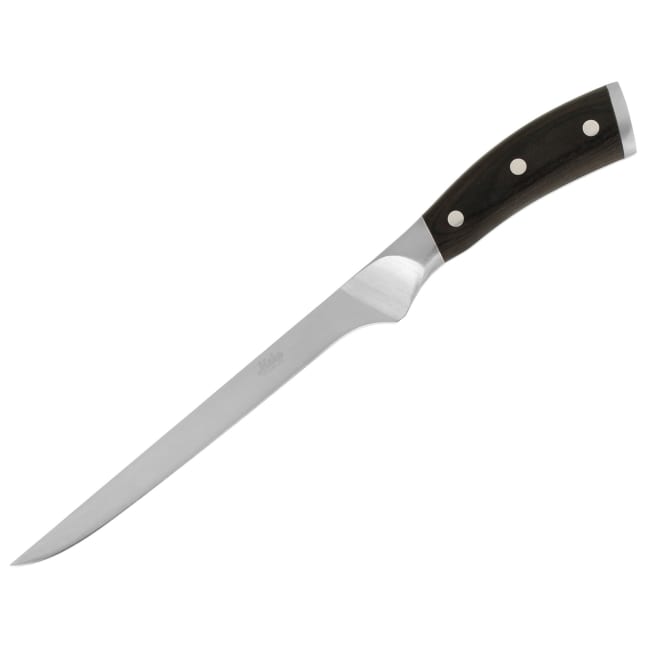 Den høykvalitets og stilige Pakka trefiletkniven er laget av tysk Vanadium 1.4116 stål av høy kvalitet. Hardhet HRC 56 +/- 2. Knivskaftet er laget av vakkert og meget slitesterkt pakkatre. Håndvask.