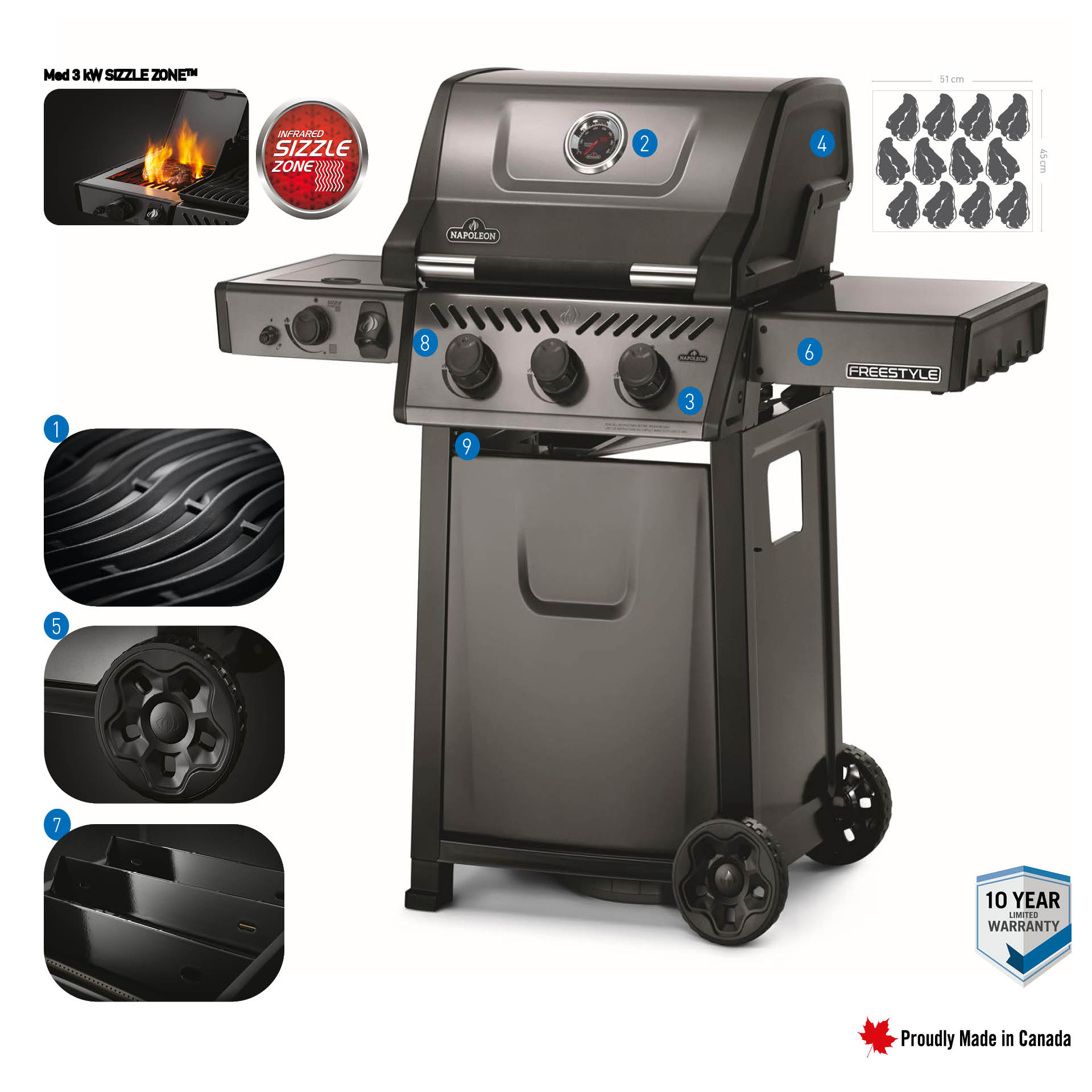 Med Freestyle-serien tilbyr Napoleon den ideelle gassgrillen for alle grillmestere som leter etter en rask introduksjon til gassgrillens verden og som ikke vil gi avkall på sofistikert teknologi og høy kvalitet. Her ble den velprøvde brennerteknologien til Rogue-gassgrillene brukt og denne ble bygget inn i en enklere og ekstremt solid grillstasjon. Dette resulterer i et spesielt godt forhold mellom pris og ytelse, noe som ikke bare er interessant for nybegynnere.