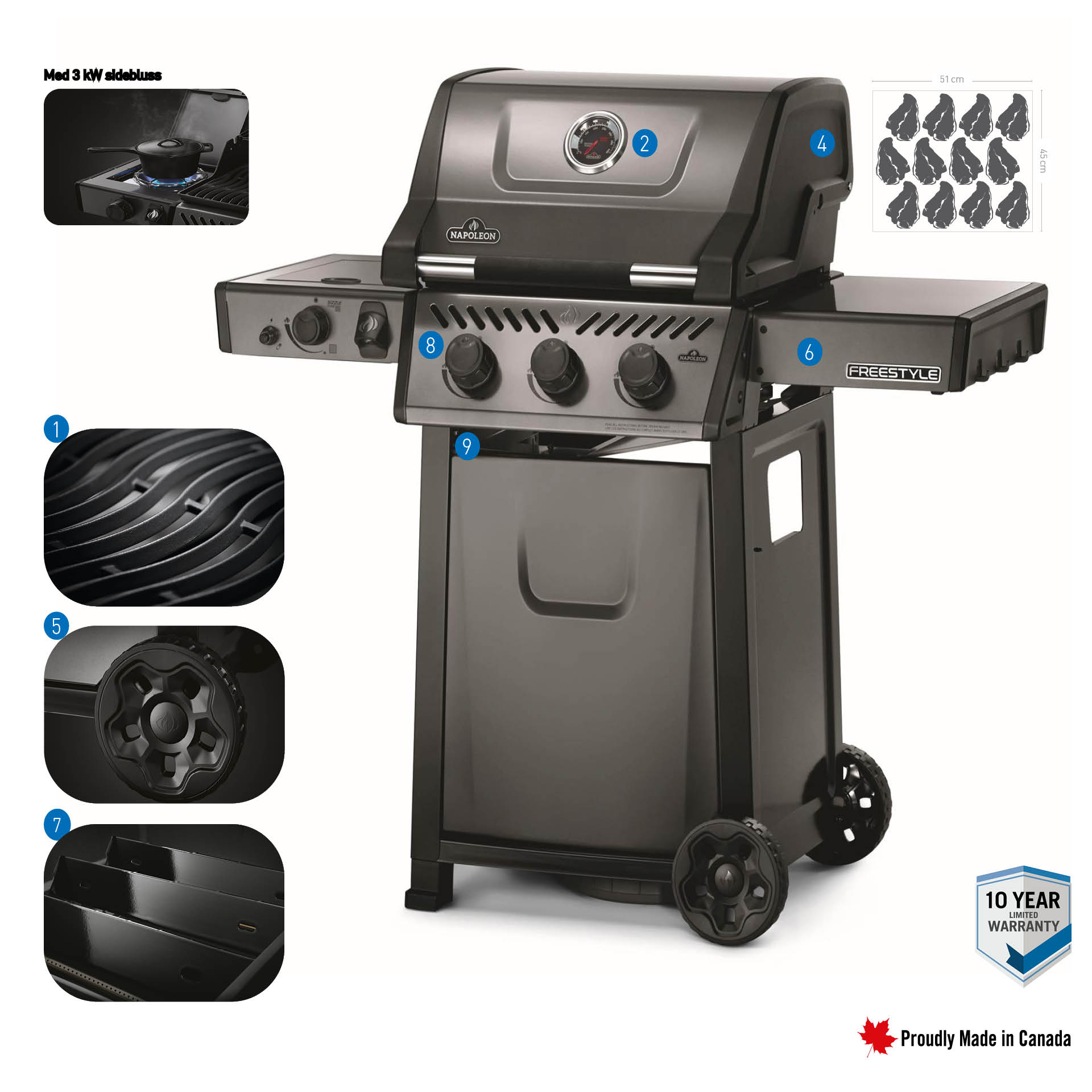 Med Freestyle-serien tilbyr Napoleon den ideelle gassgrillen for alle grillmestere som leter etter en rask introduksjon til gassgrillens verden og som ikke vil gi avkall på sofistikert teknologi og høy kvalitet. Her ble den velprøvde brennerteknologien til Rogue-gassgrillene brukt og denne ble bygget inn i en enklere og ekstremt solid grillstasjon. Dette resulterer i et spesielt godt forhold mellom pris og ytelse, noe som ikke bare er interessant for nybegynnere.